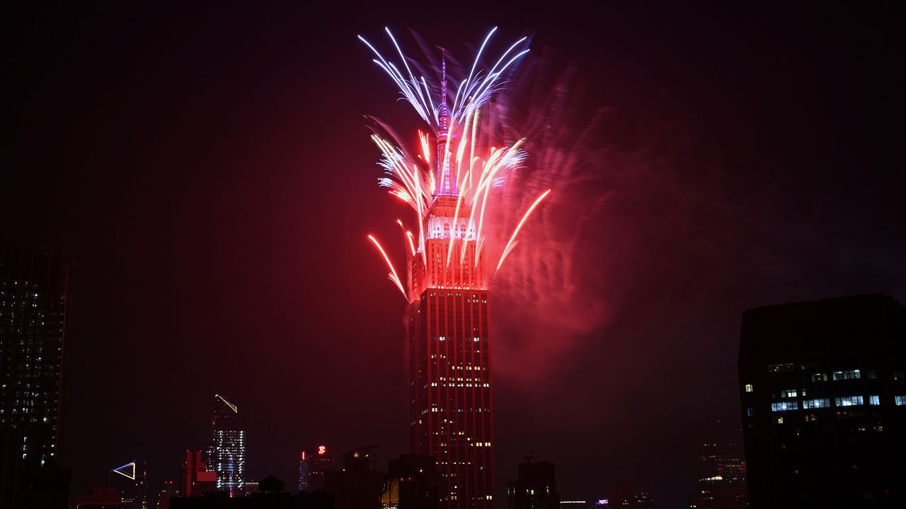 Fireworks Are Launched Over The Empire State Building To Celebrate